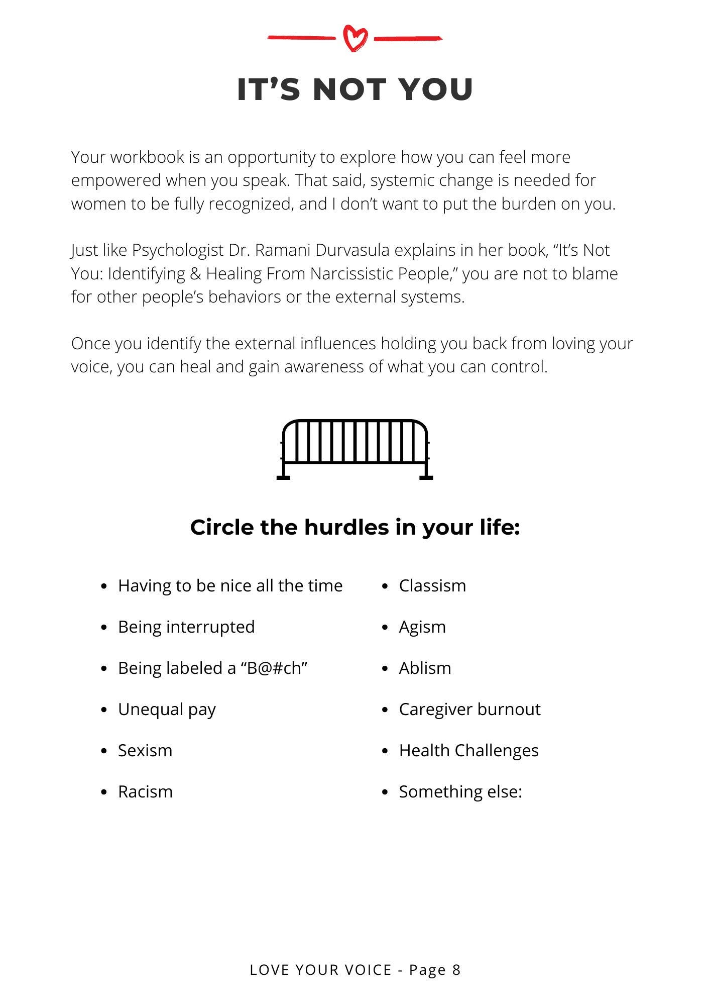 This was an empowering workbook that helped me understand why I’ve been keeping my voice small. This revelation was transformative for me.
